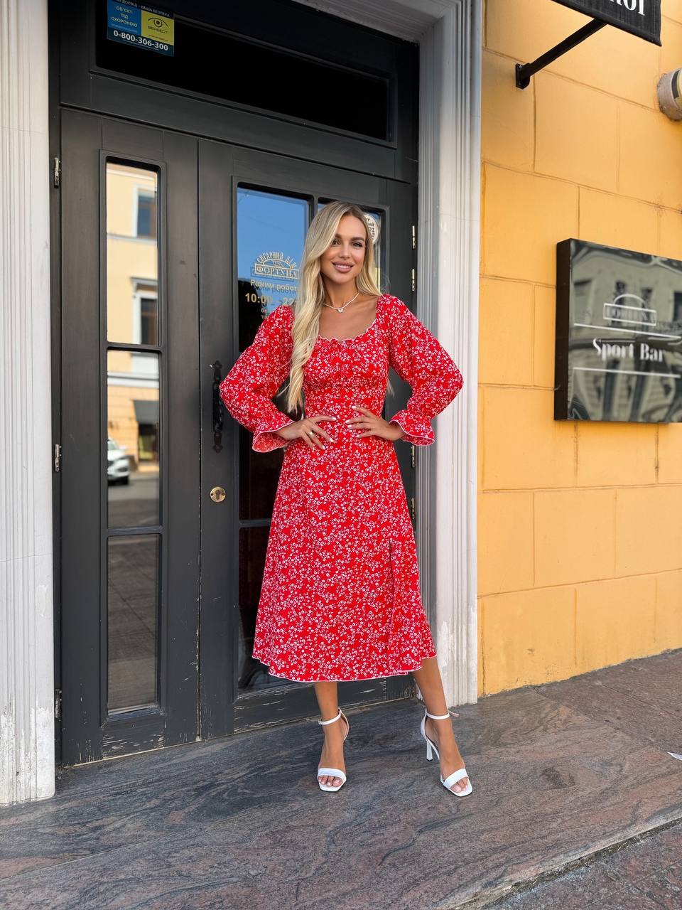 Универсальное платье миди красного цвета 33769