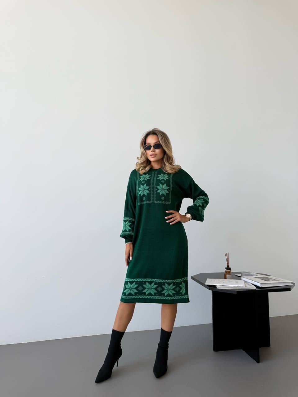 Вязаное платье с этничным рисунком зеленого цвета 34356