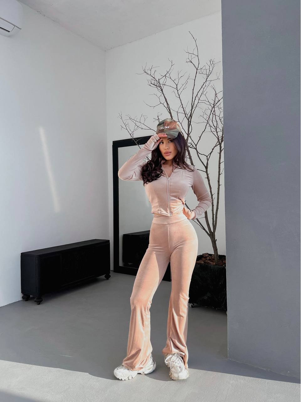 Велюровый женский костюм бежевого цвета 31423