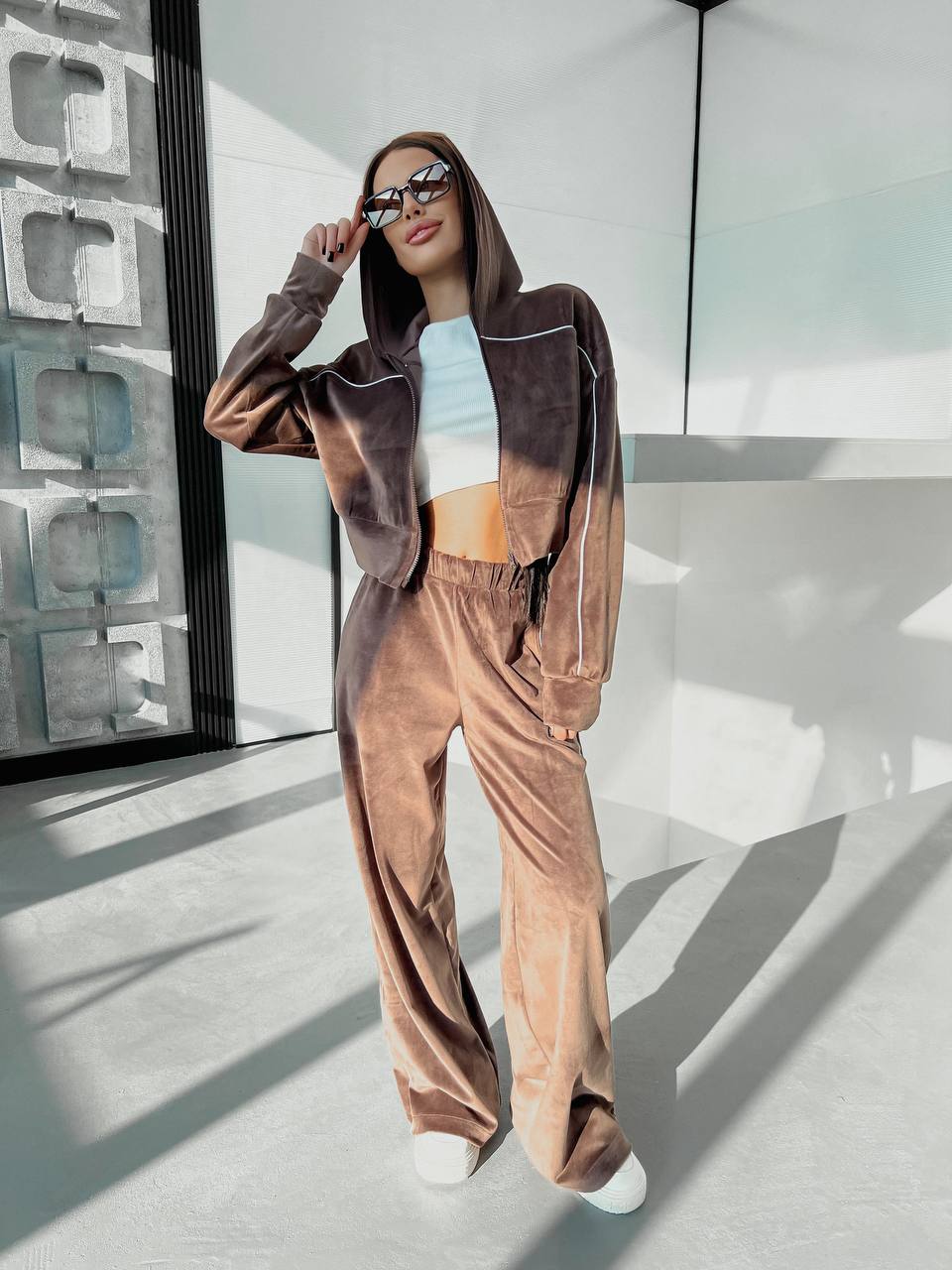 Велюровый женский костюм с капюшоном коричневого цвета 31708