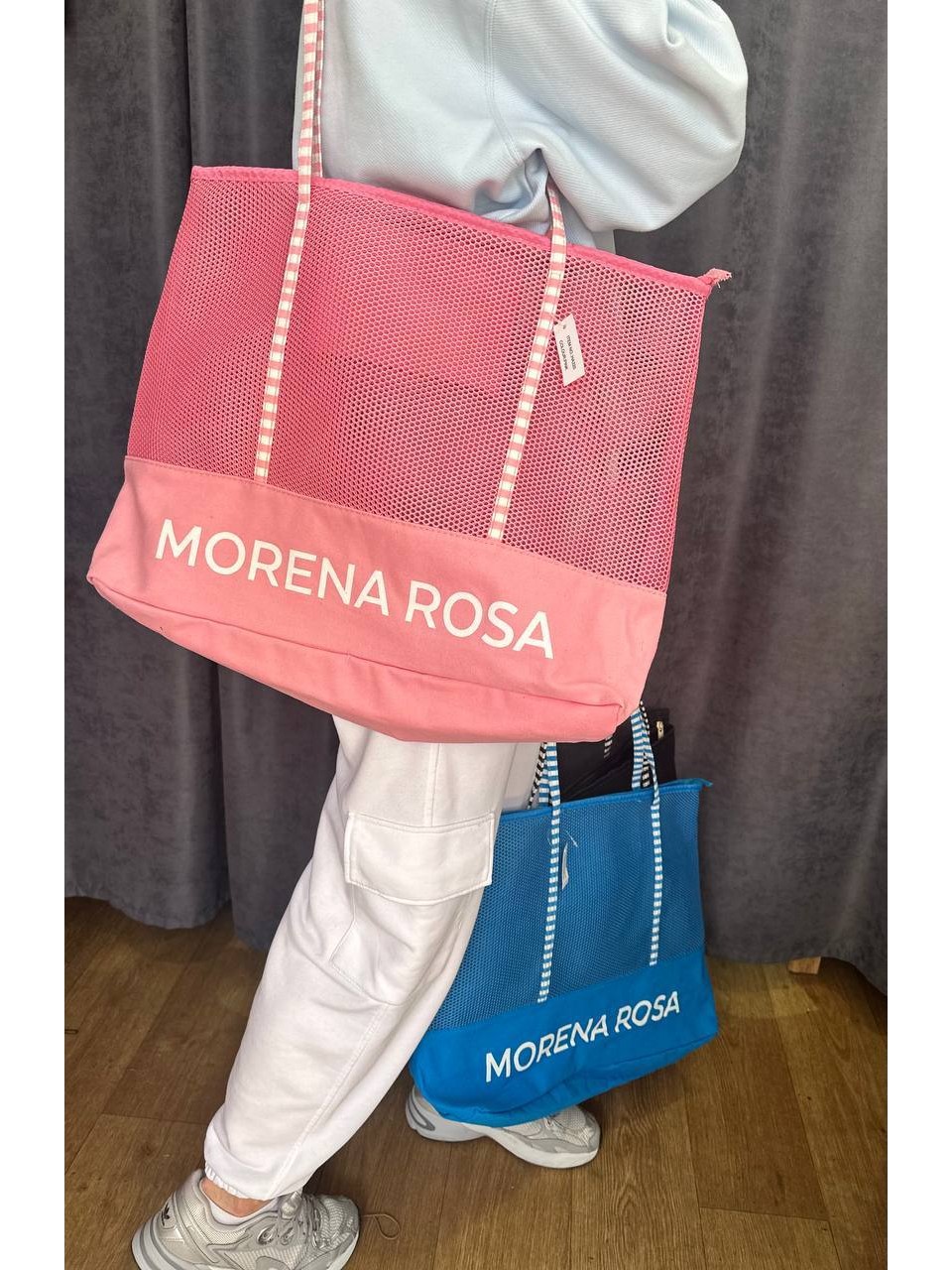 Женская пляжная сумка сетка розового цвета 32755