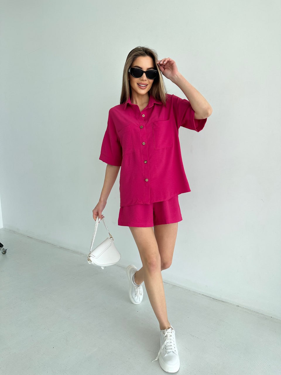Женский летний костюм рубашка+шорты малинового цвета 33112