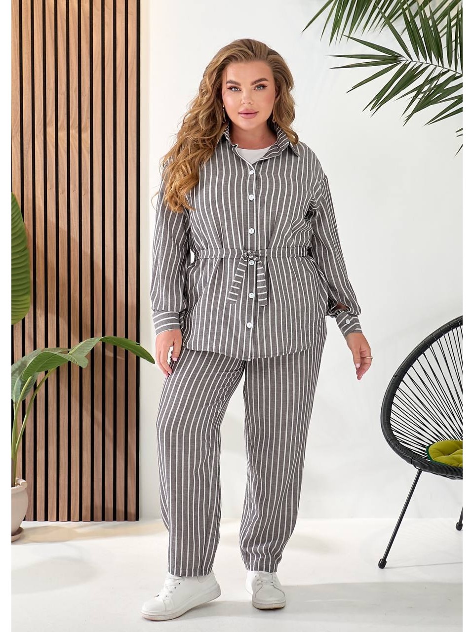 Женский льняной костюм 3-ка (штаны+майка+рубашка) графитового цвета 33330