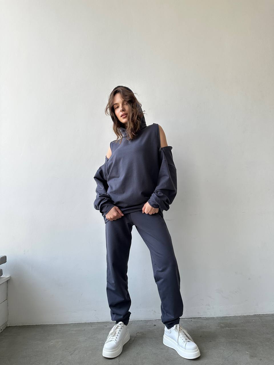 Женский повседневный костюм серого цвета 29270