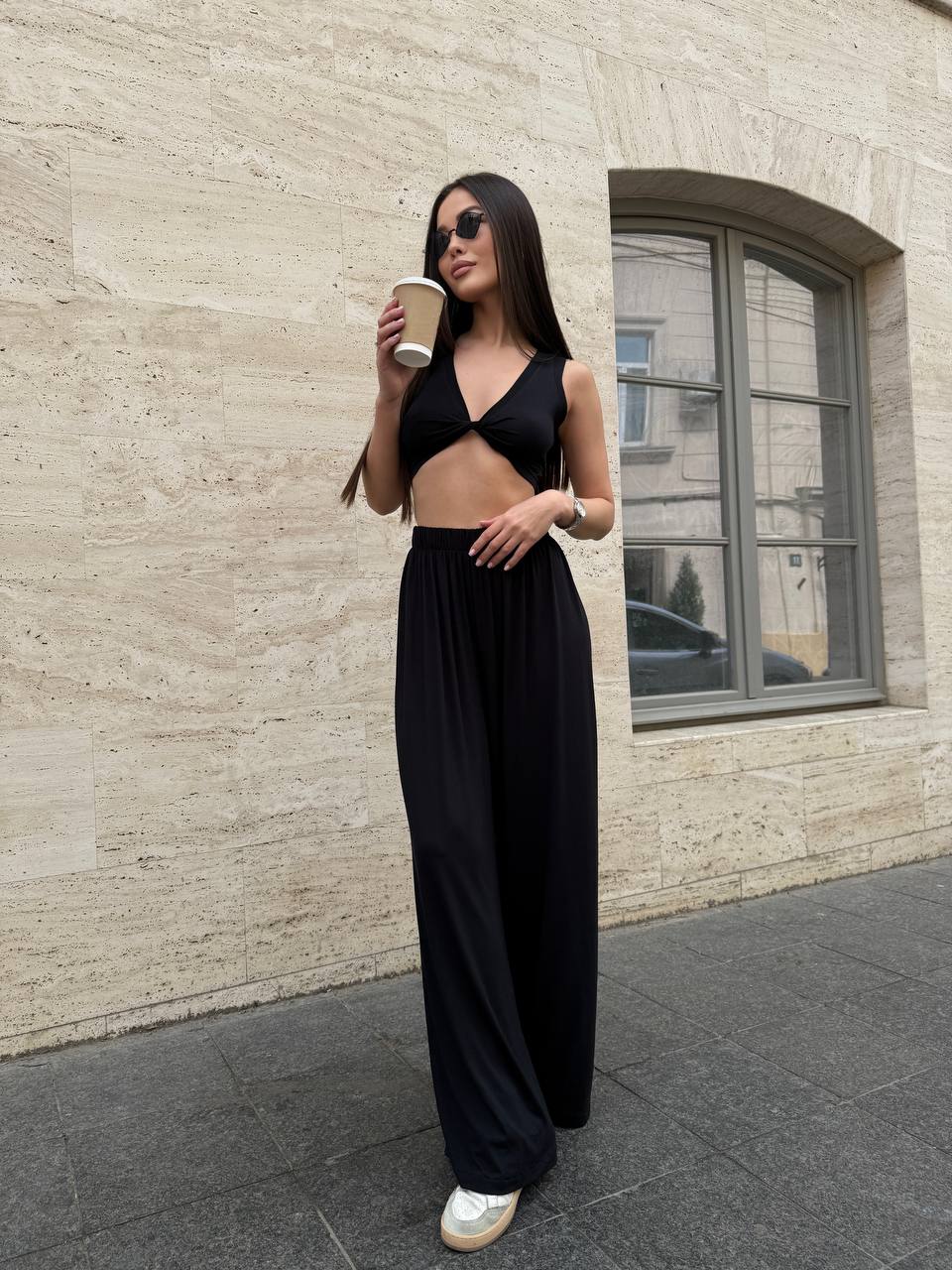 Женский прогулочный костюм (топ+штаны) черного цвета 33130