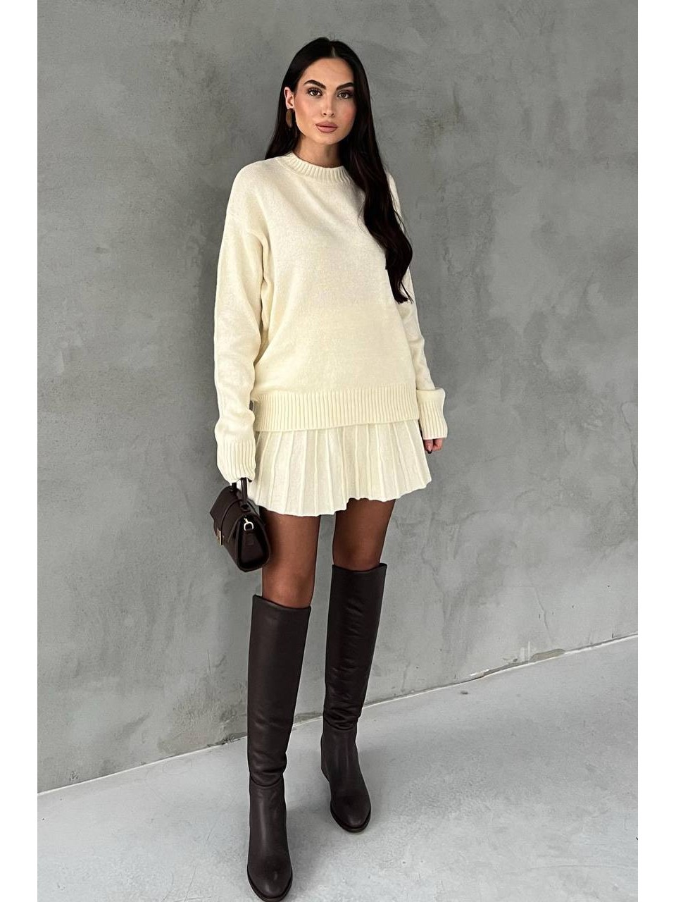 Женский теплый костюм 2-ка с юбкой молочного цвета 30500