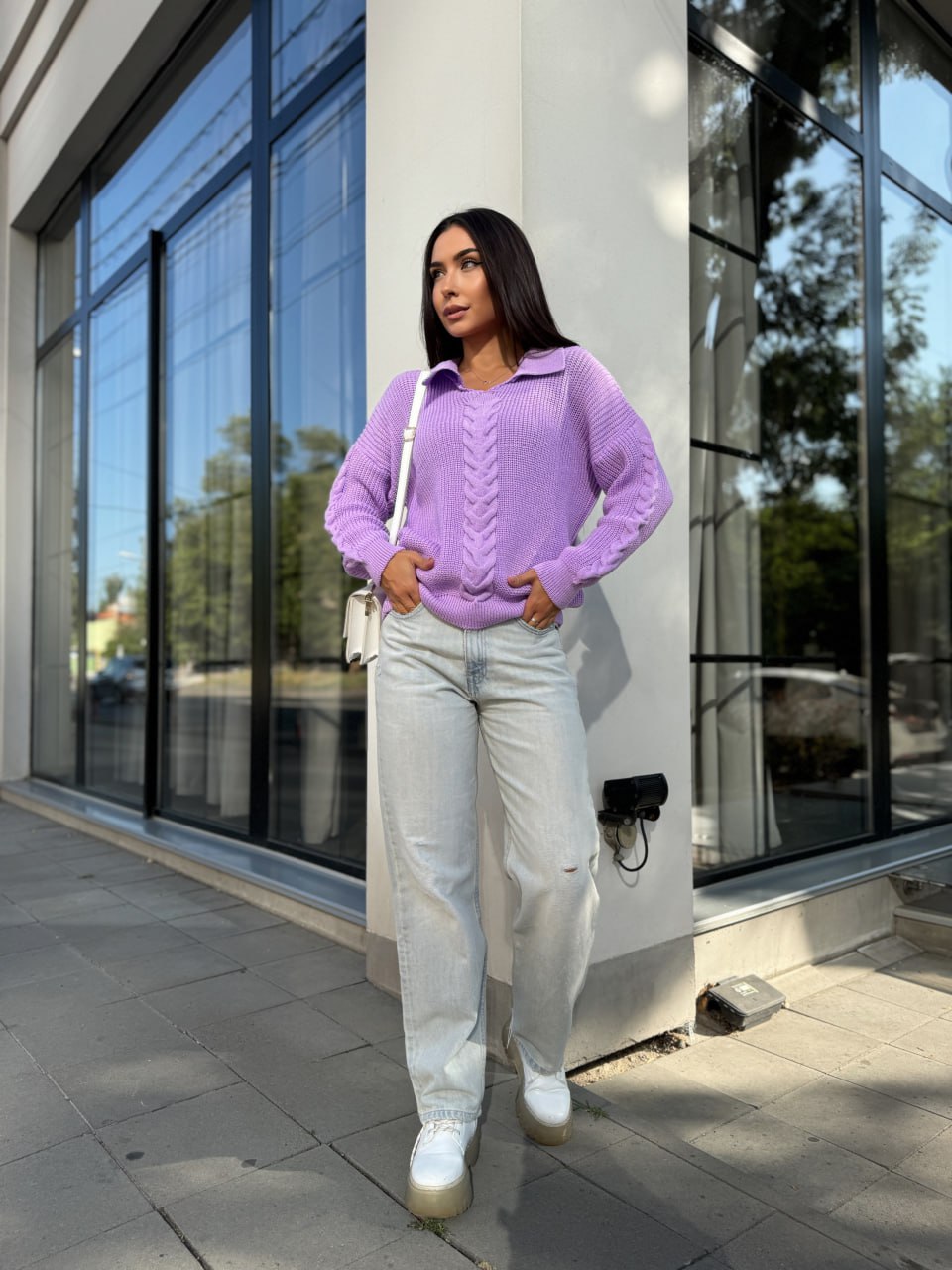 Женская кофта с отложенным воротником сиреневого цвета 29957