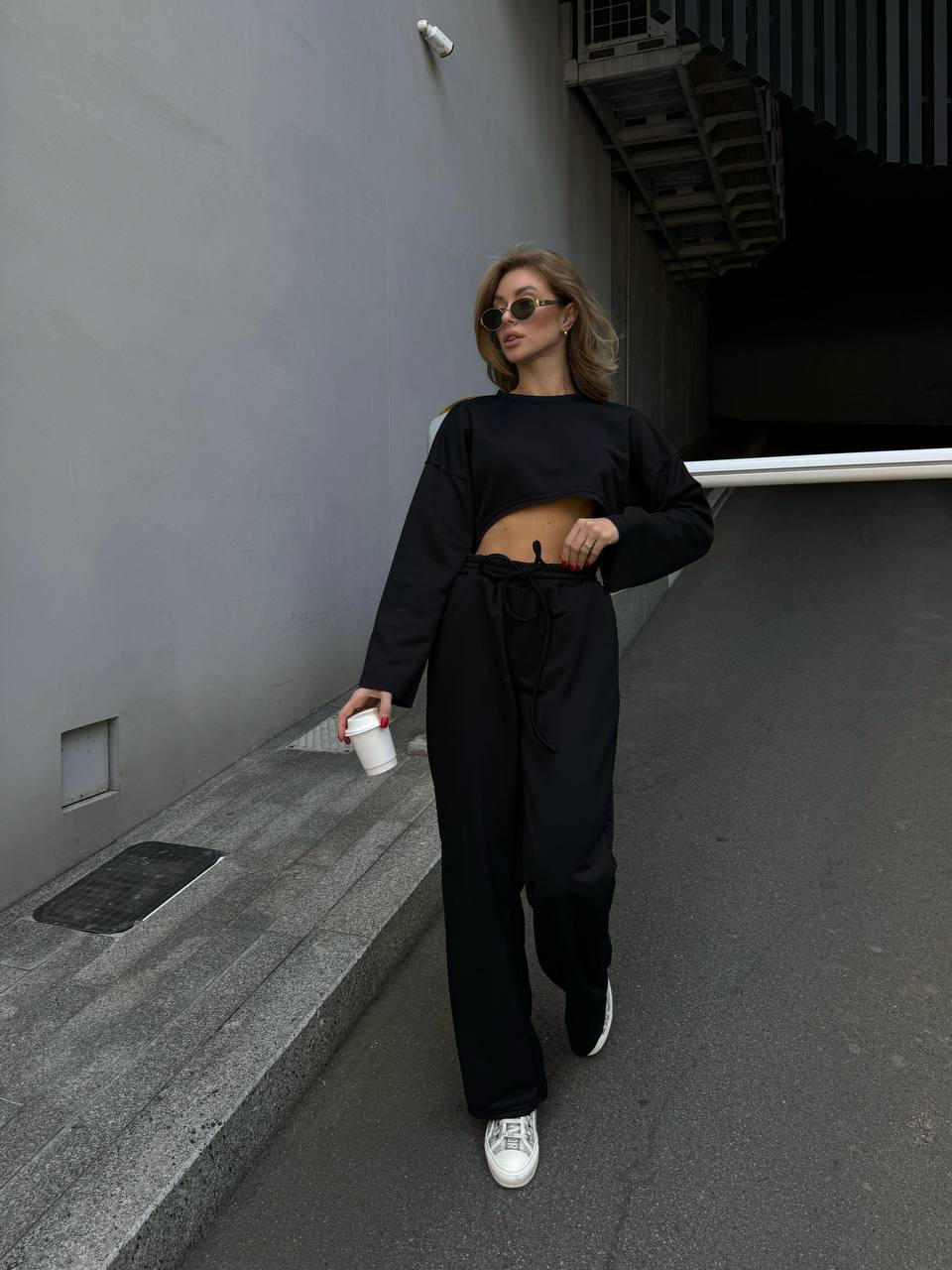 Женский прогулочны костюм свободного кроя черного цвета 29356