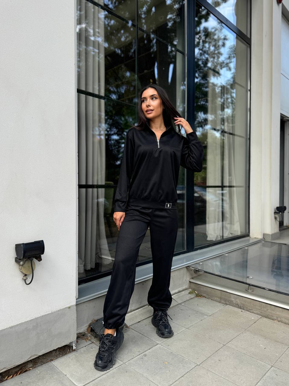 Женский спортивный костюм из трикотажа черного цвета 29186
