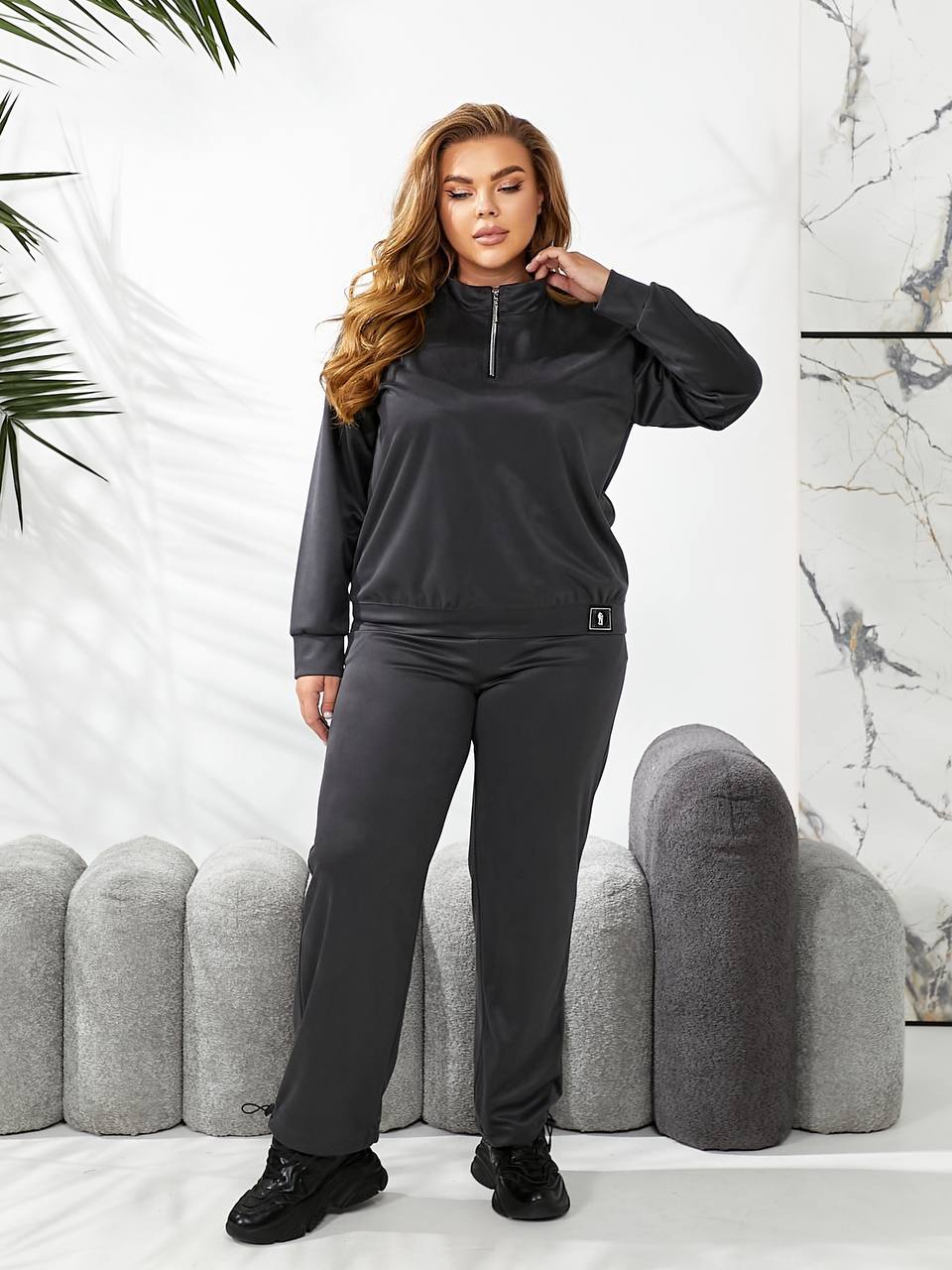 Женский спортивный костюм из трикотажа графитового цвета 29176