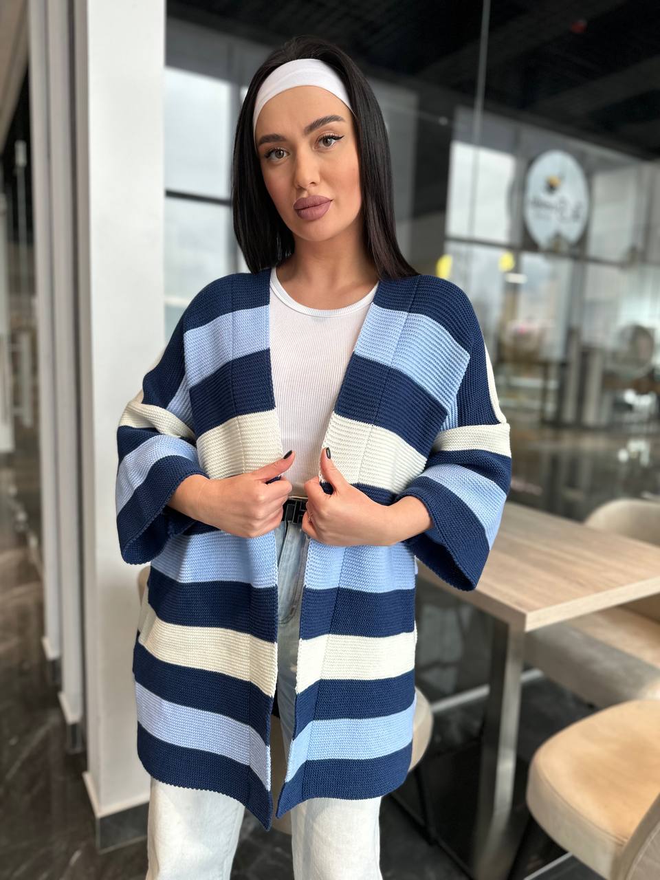 Фасоны: Кардиганы бывают различных стилей, включая классические с пуговицами, модели с запахом и завязками на поясе, а также более свободные и объемные варианты. Они могут быть как длинными до колен, так и короткими, заканчивающимися на уровне талии.