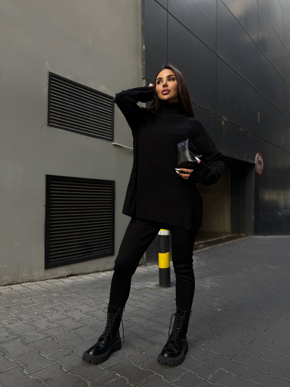 Женский костюм свитер+лосины черного цвета 34768