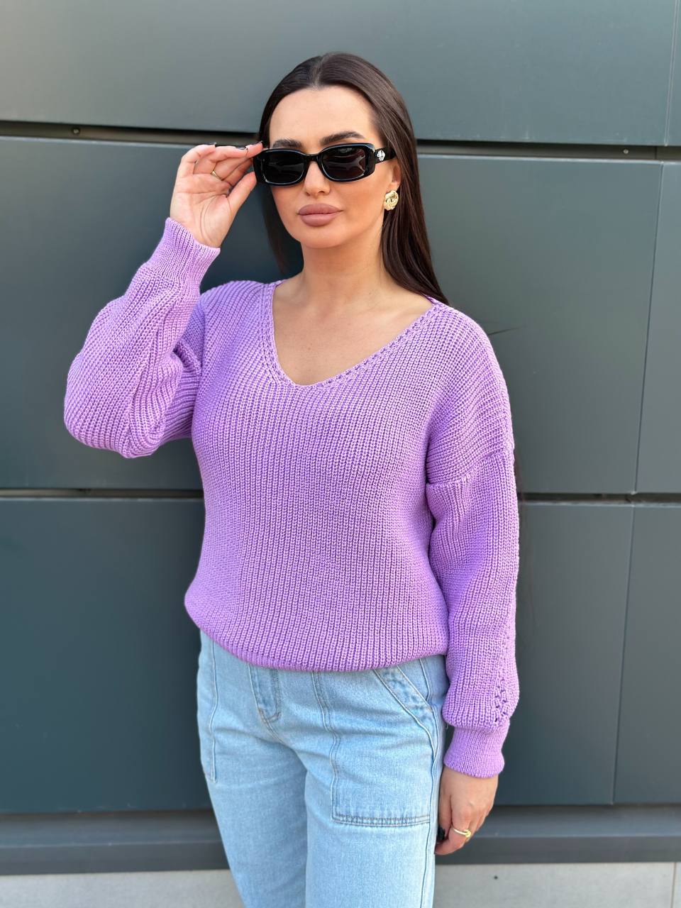 Женский свитер с вырезом сиреневого цвета 34423