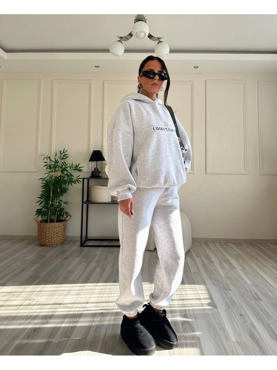 Женский теплый костюм с надписью на спине серого цвета 35148
