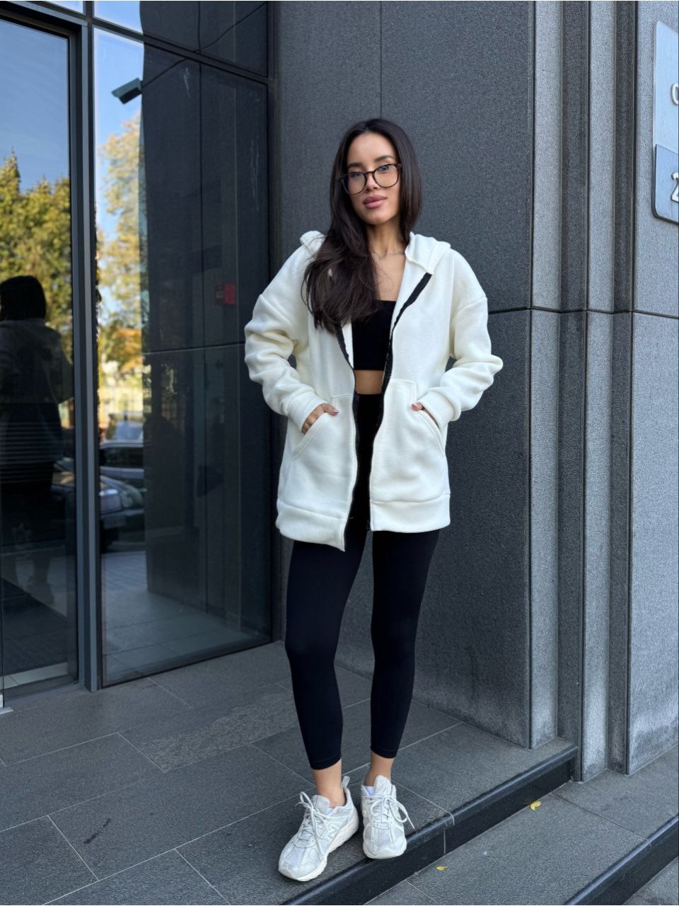 Женская теплая кофта свободного кроя молочного цвета 34937