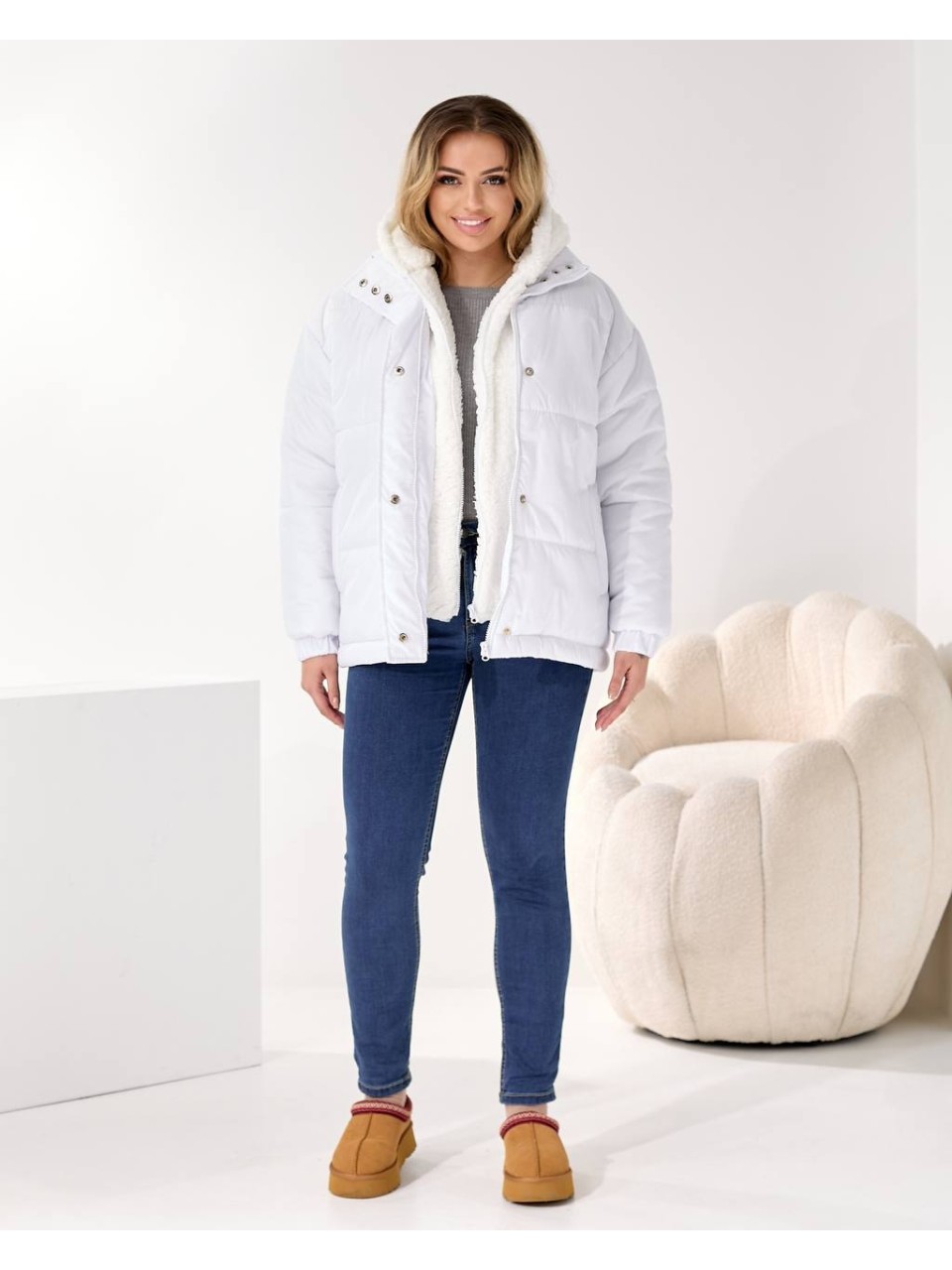 Женская зимняя куртка молочного цвета 36064
