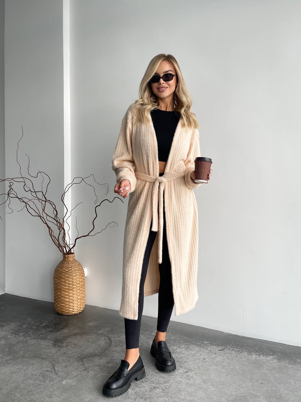 Женский длинный кардиган из альпаки бежевого цвета 35207