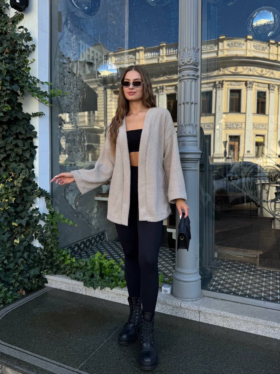 Фасоны: Кардиганы бывают различных стилей, включая классические с пуговицами, модели с запахом и завязками на поясе, а также более свободные и объемные варианты. Они могут быть как длинными до колен, так и короткими, заканчивающимися на уровне талии.