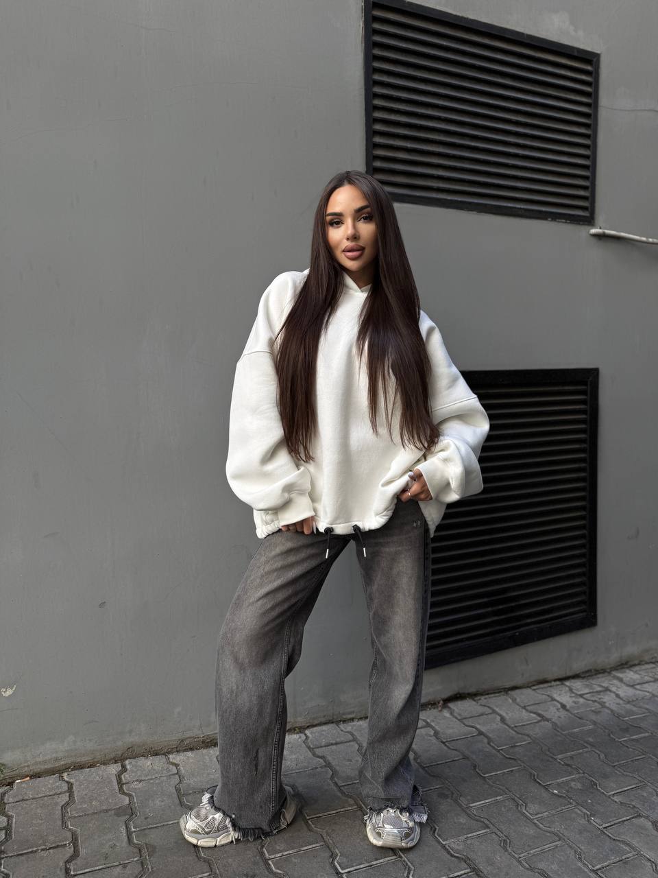 Женский худи с капюшлном на флисе молочного цвета 35203