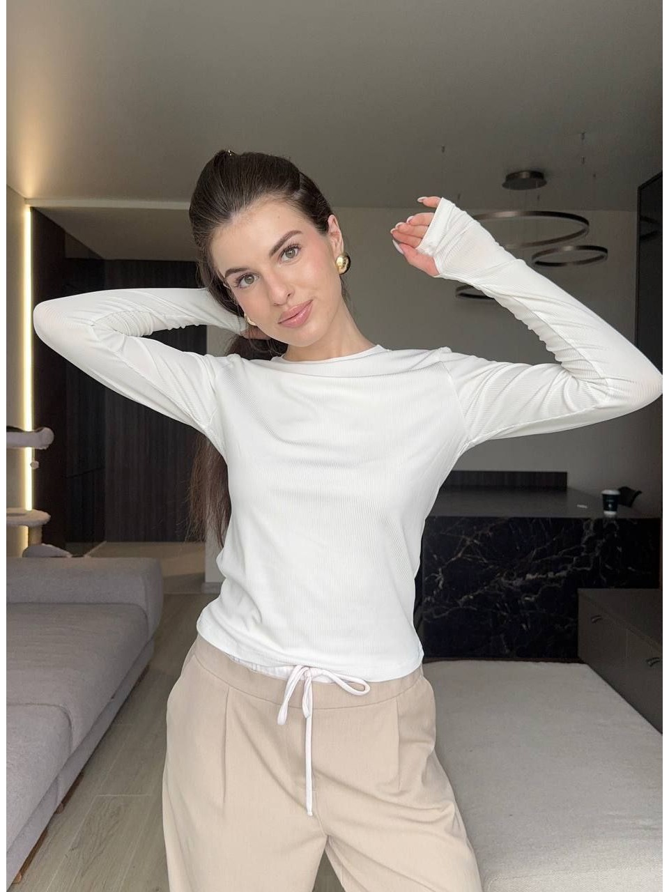Женский легкий лонгслив в рубчик молочного цвета 35671