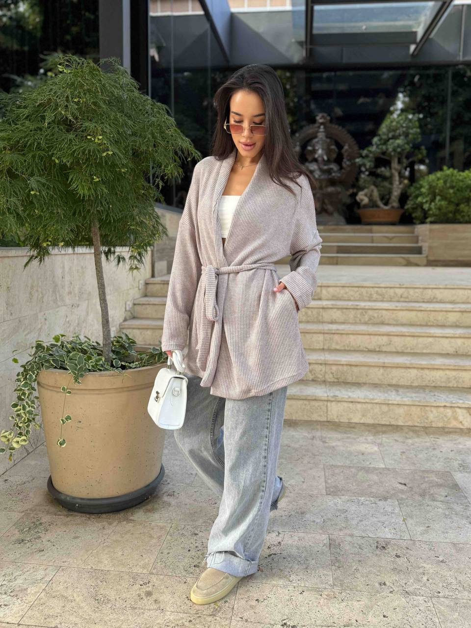 Фасоны: Кардиганы бывают различных стилей, включая классические с пуговицами, модели с запахом и завязками на поясе, а также более свободные и объемные варианты. Они могут быть как длинными до колен, так и короткими, заканчивающимися на уровне талии.