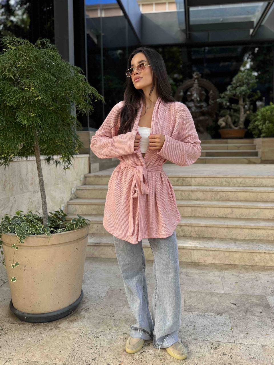 Фасоны: Кардиганы бывают различных стилей, включая классические с пуговицами, модели с запахом и завязками на поясе, а также более свободные и объемные варианты. Они могут быть как длинными до колен, так и короткими, заканчивающимися на уровне талии.