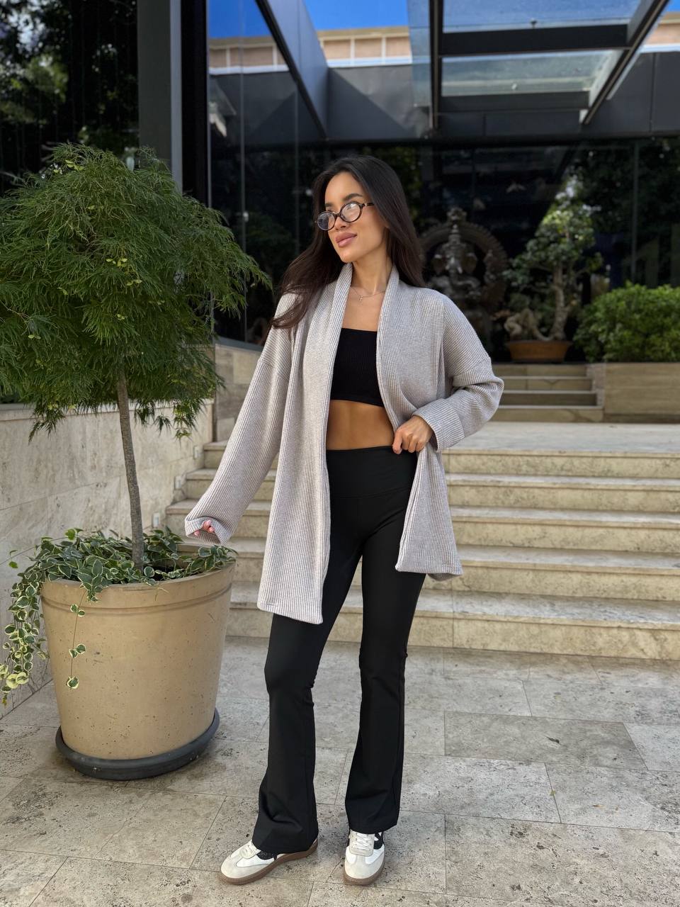 Фасоны: Кардиганы бывают различных стилей, включая классические с пуговицами, модели с запахом и завязками на поясе, а также более свободные и объемные варианты. Они могут быть как длинными до колен, так и короткими, заканчивающимися на уровне талии.