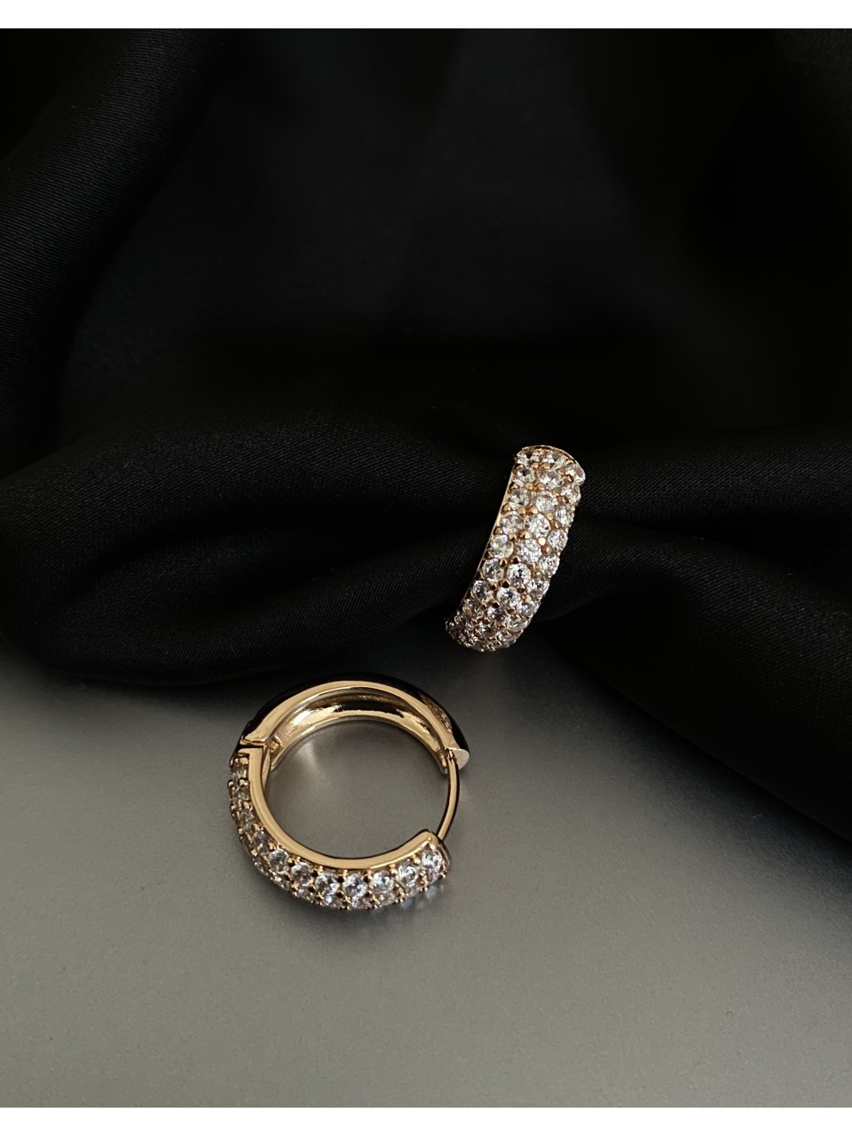Сережки каблучки з камінцями круглий замок золотого кольору 32016