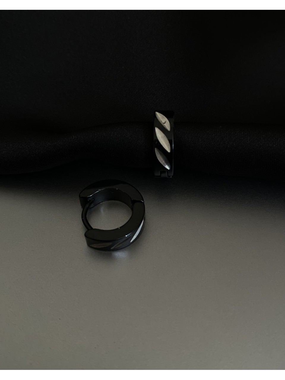 Сережки "Пелюстки" застібка - кільце чорного кольору 32011
