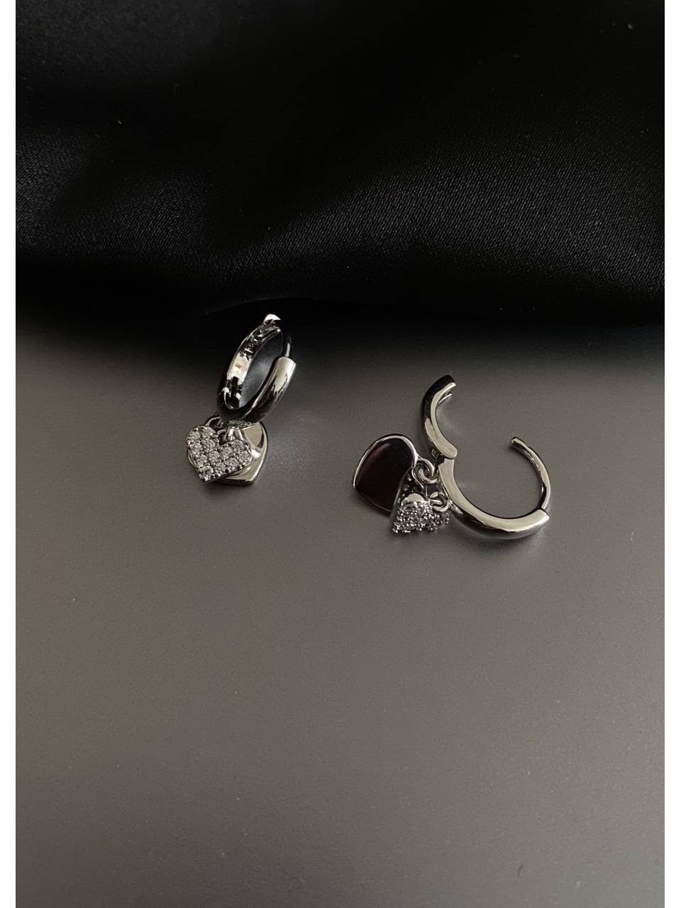 Сережки "Подвійні серця" срібного кольору 31898