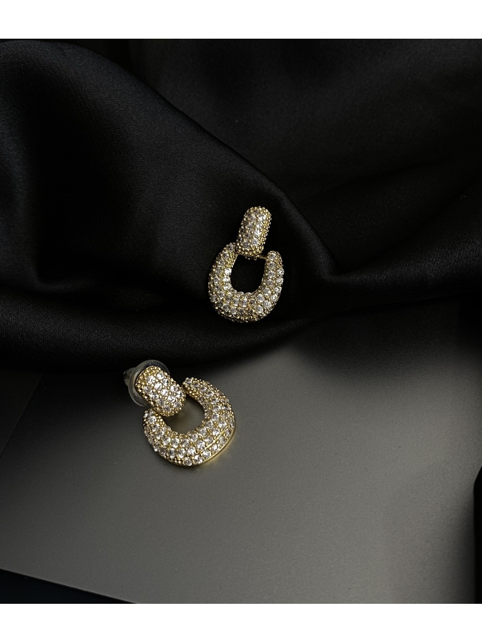 Сережки з камінчиками золотого кольору 33128