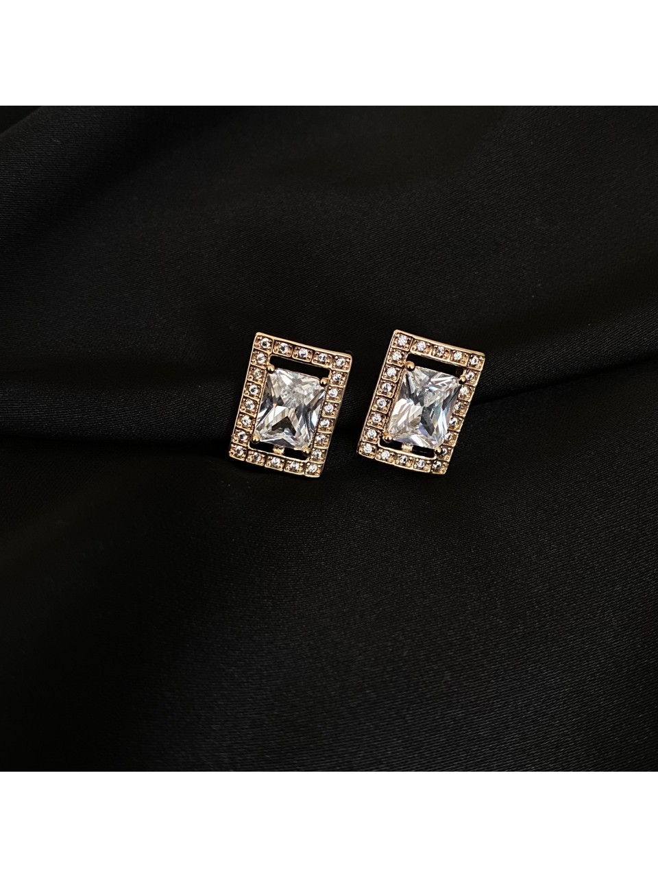 Сережки з великим каменем англійський замок золотого кольору 32427