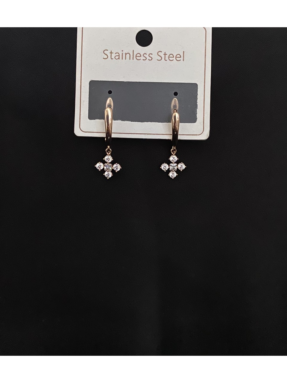 Сережки хрестики з камінцями англійський замок золотого кольору 33838