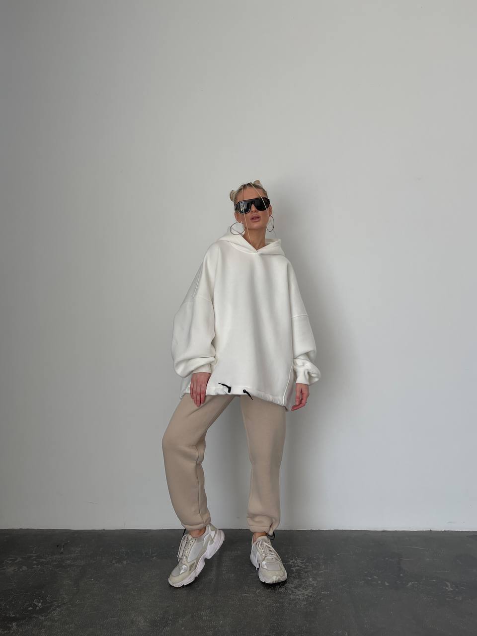 Стильний та вільний худі з вишивкою "Mriya" білого кольору 29053