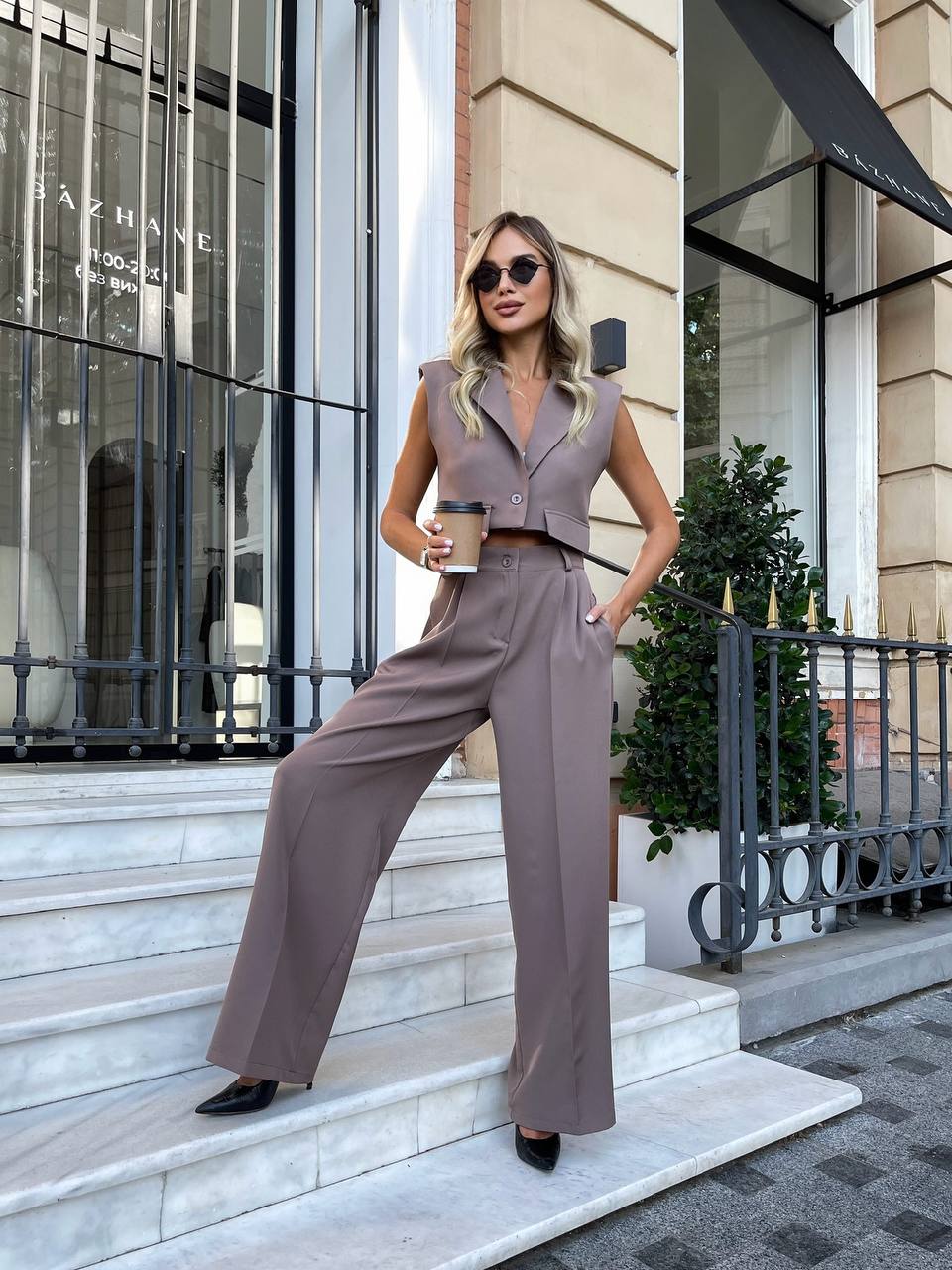 Стильний класичний костюм кавового кольору 28741