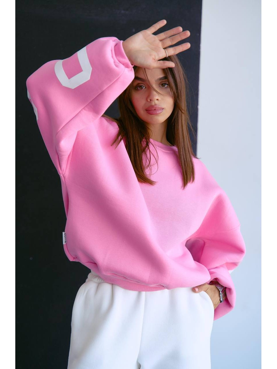 Стильний світшот на флісі з написом рожевого кольору 28967