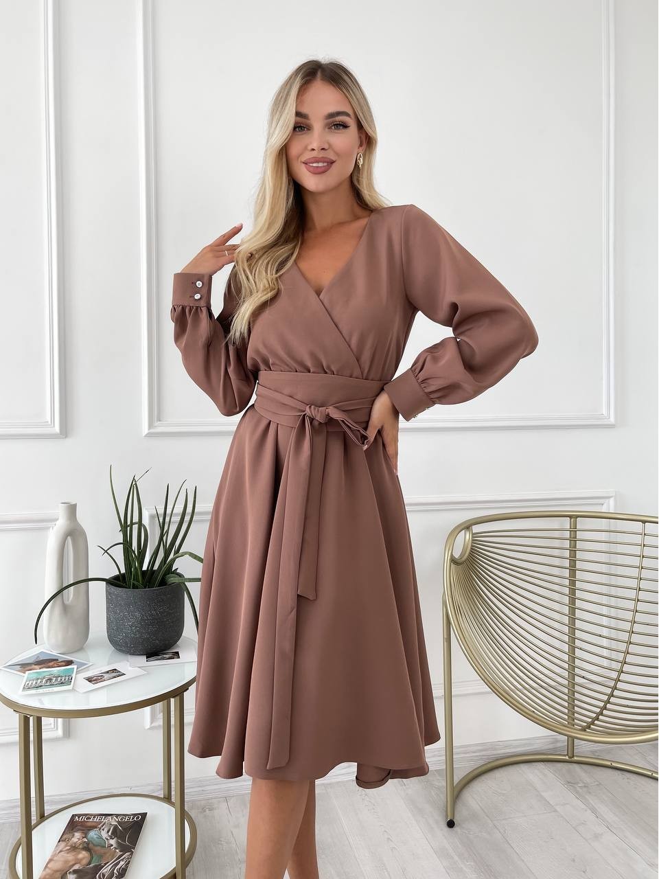 Сукня міді з поясом, кольору мокко 24224