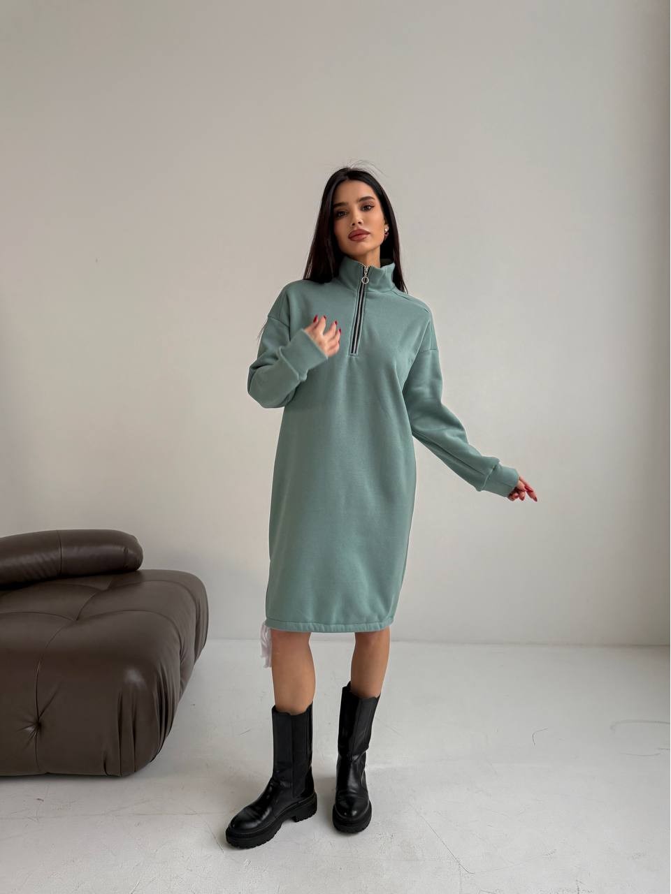Тепла сукня на флісі фiсташкового кольору 30405