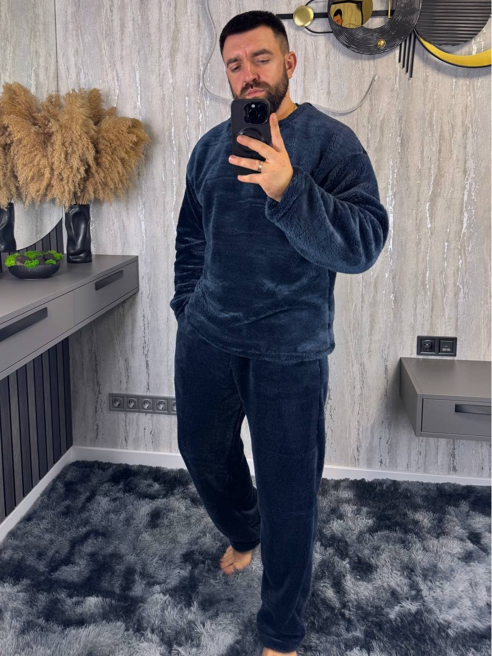 Жіночий костюм виготовлений з високоякісного матеріалу, який дуже приємний до тіла. Теплий костюм ідеально підходить для вечірнього відпочинку вдома, перегляду фільмів чи читання книг. Наш теплий домашній костюм – це не просто одяг для дому, це ваш супутник у холодну пору року. Він створений для того, щоб подарувати вам комфорт та забезпечити теплоту та затишок під час вечірнього відпочинку будинку. Костюм виготовлений із високоякісного матеріалу. Він призначений для тих, хто цінує зручність та стиль у будь-який момент. Ви можете носити його, розслабившись перед телевізором, готуючи обід або просто відпочиваючи на дивані. Він ідеально підходить для довгих зимових вечорів та допомагає створити атмосферу тепла та комфорту у вашому будинку.