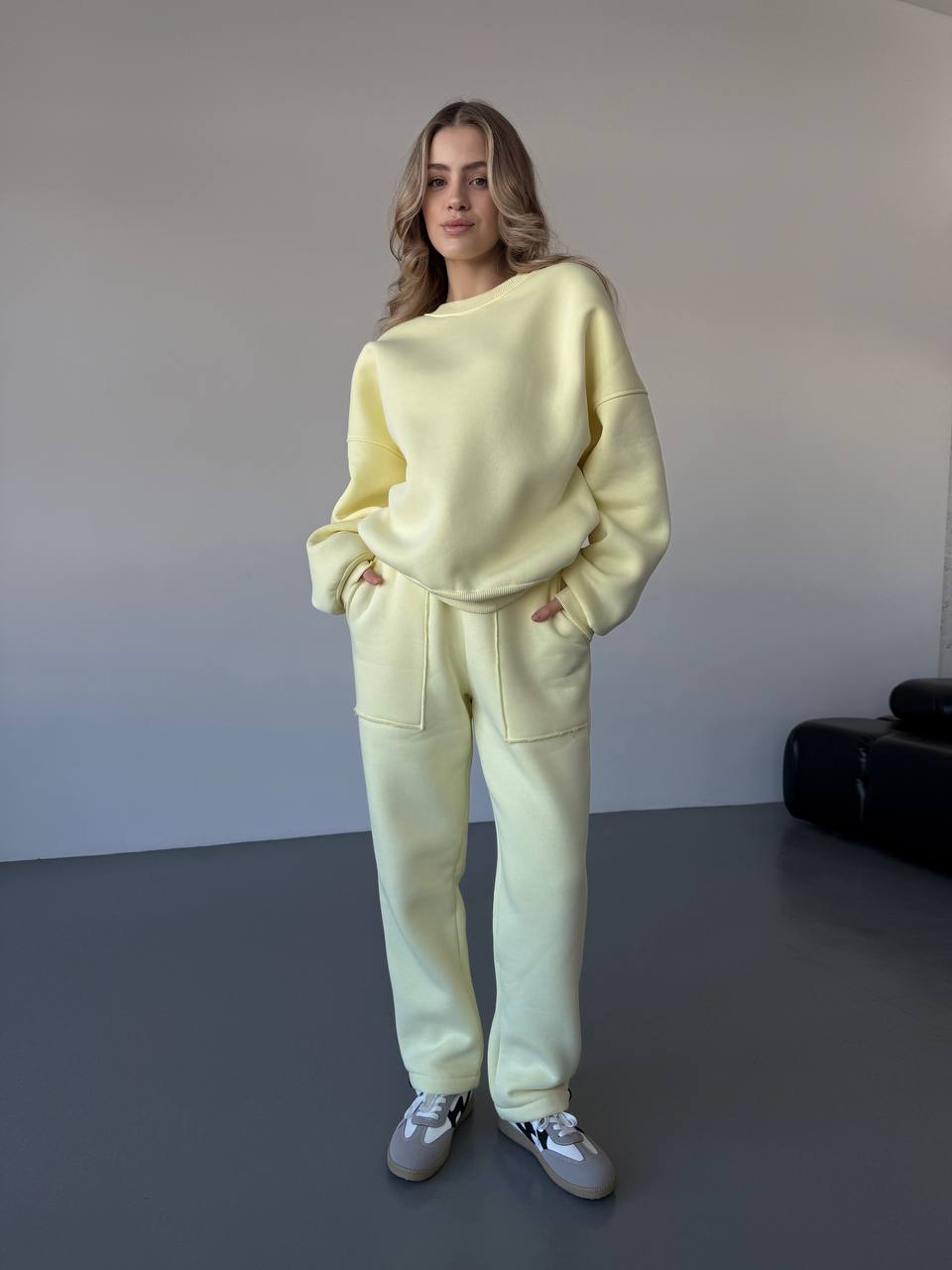 Теплий жiночий костюм жовтого кольору 35624