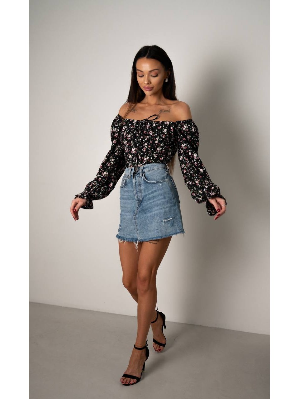 Топ із довгим рукавом на зав'язках чорного кольору 31559