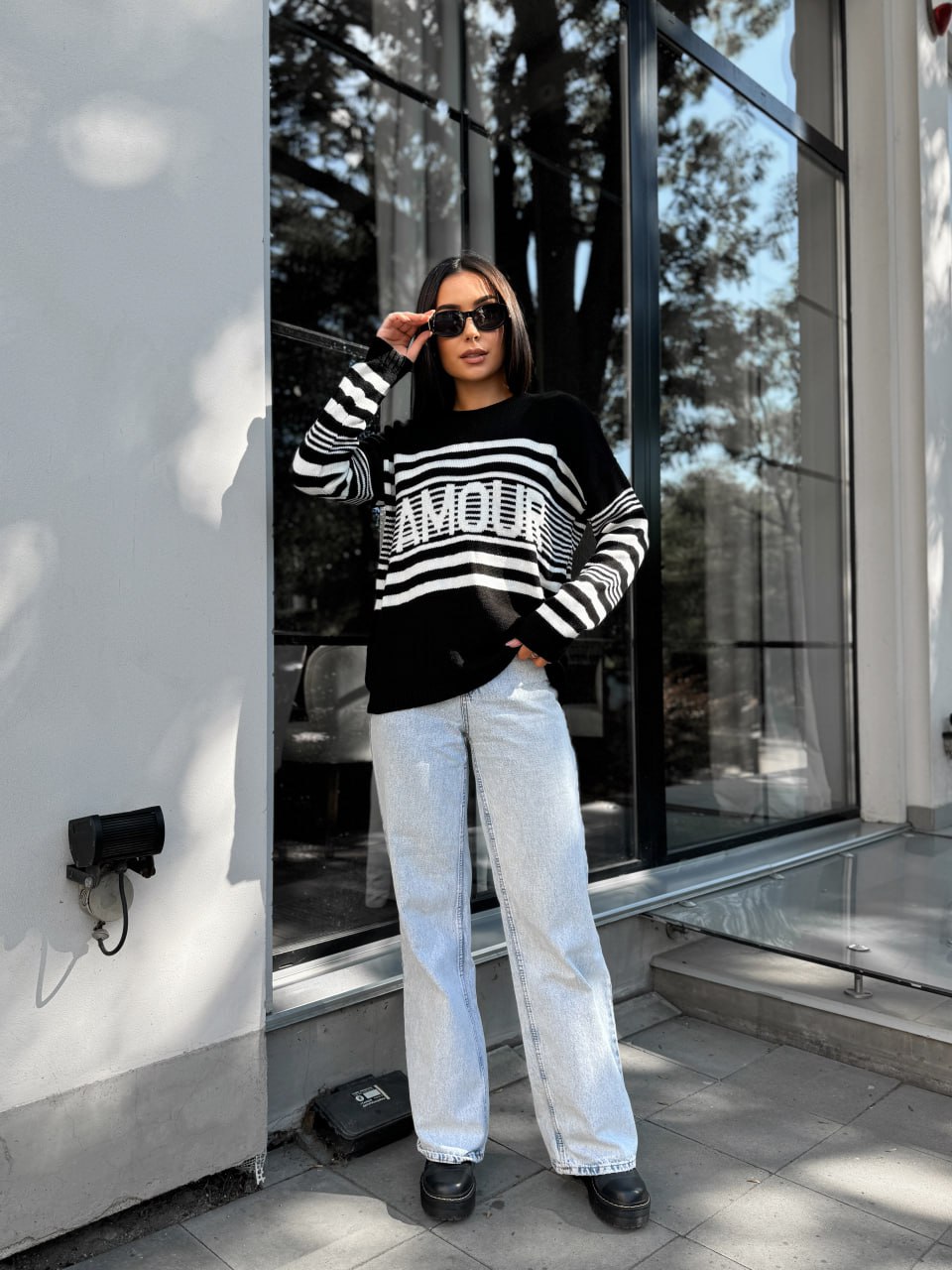 Подовжений жіночий светр із написом чорного кольору 29905