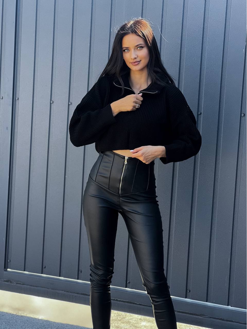 Укорочений жіночий светр на блискавці чорного кольору 29283