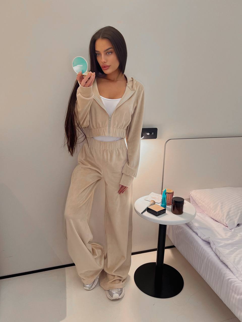 Велюровий жіночий костюм на блискавці бежевого кольору 31222