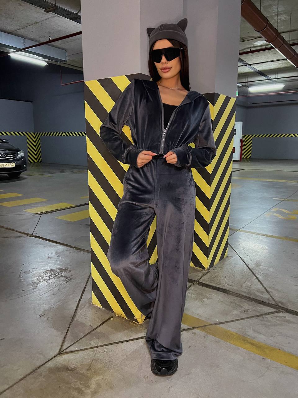 Велюровий жіночий костюм на блискавці графiтового кольору 31227