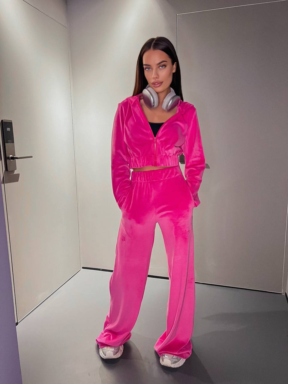 Велюровий жіночий костюм на блискавці малинового кольору 31894