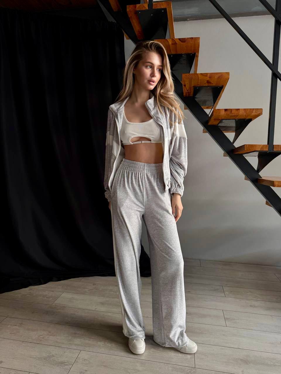 Велюровий жіночий костюм на блискавці зі вставками сiрого кольору 31453