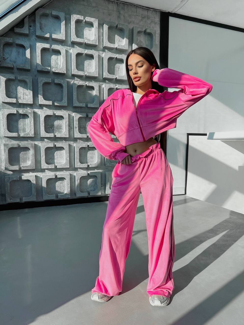 Велюровий жіночий костюм з капюшоном малинового кольору 31711