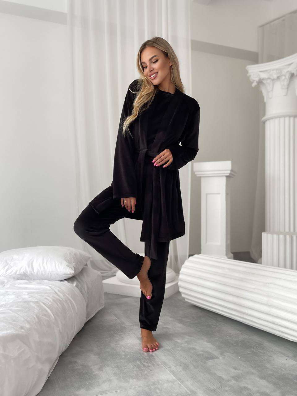 Велюровий домашній комплект трiйка чорного кольору 34540