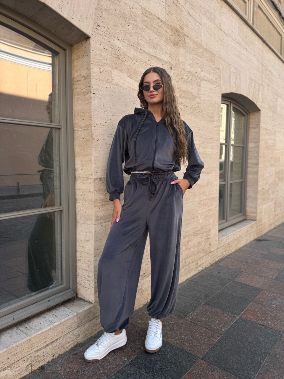 Велюровий жіночий костюм на блискавці графiтового кольору 34693